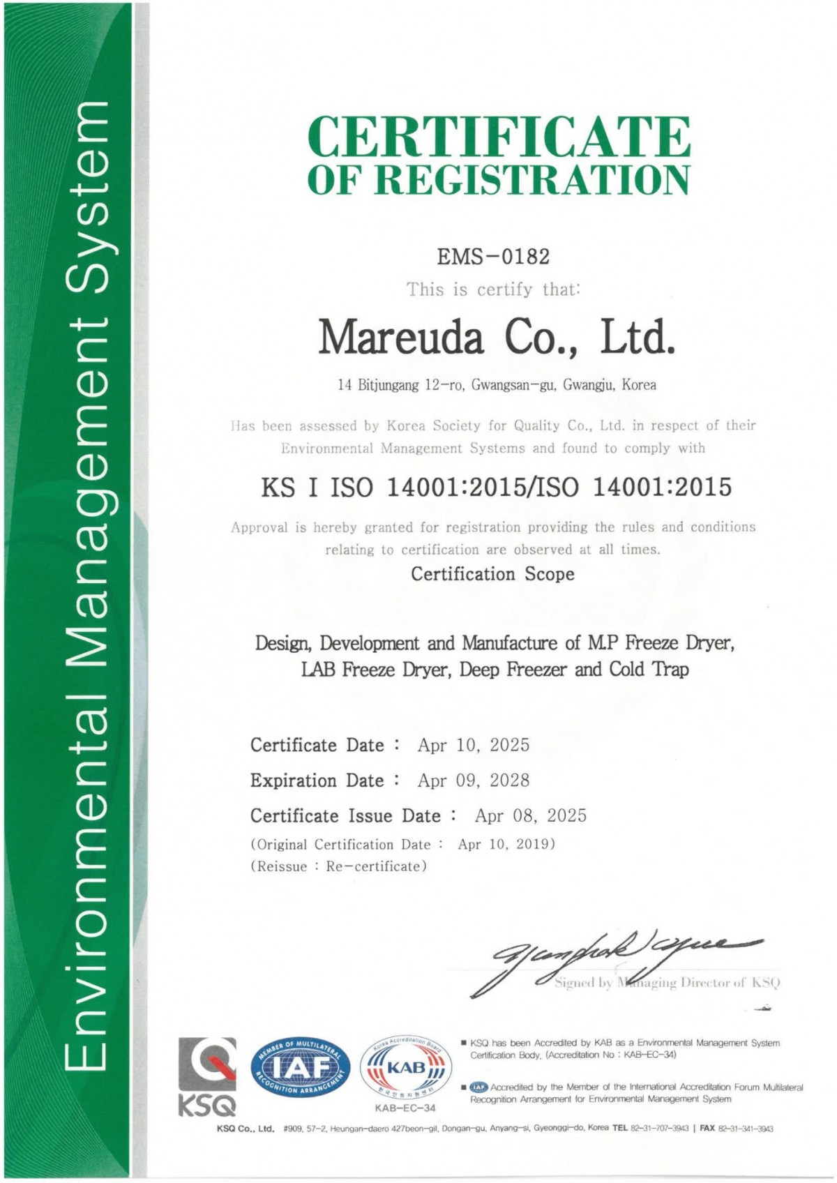 ISO14001:2015 > 인증현황